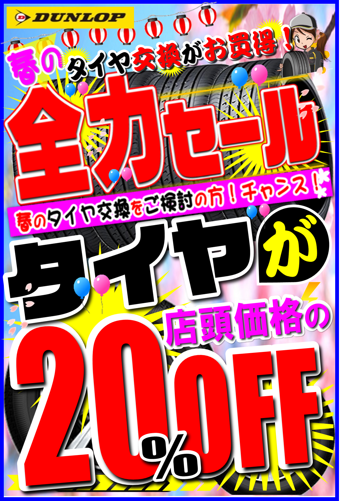 タイヤ交換が"通常店頭価格の20%OFF”で交換できる