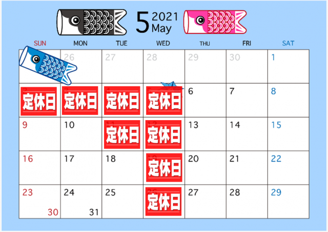 「5月&ゴールデンウイーク」の休業日をお知らせします!