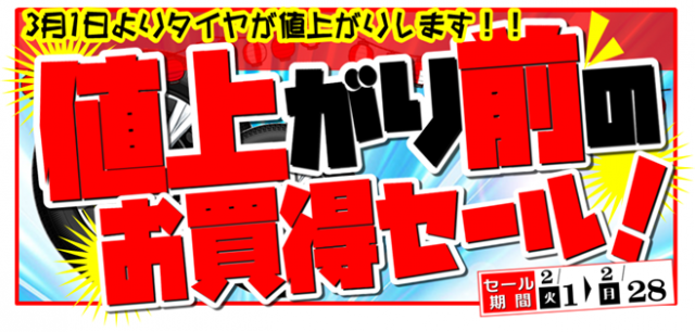 3月よりダンロップ・ファルケンタイヤ価格が値上がりします!