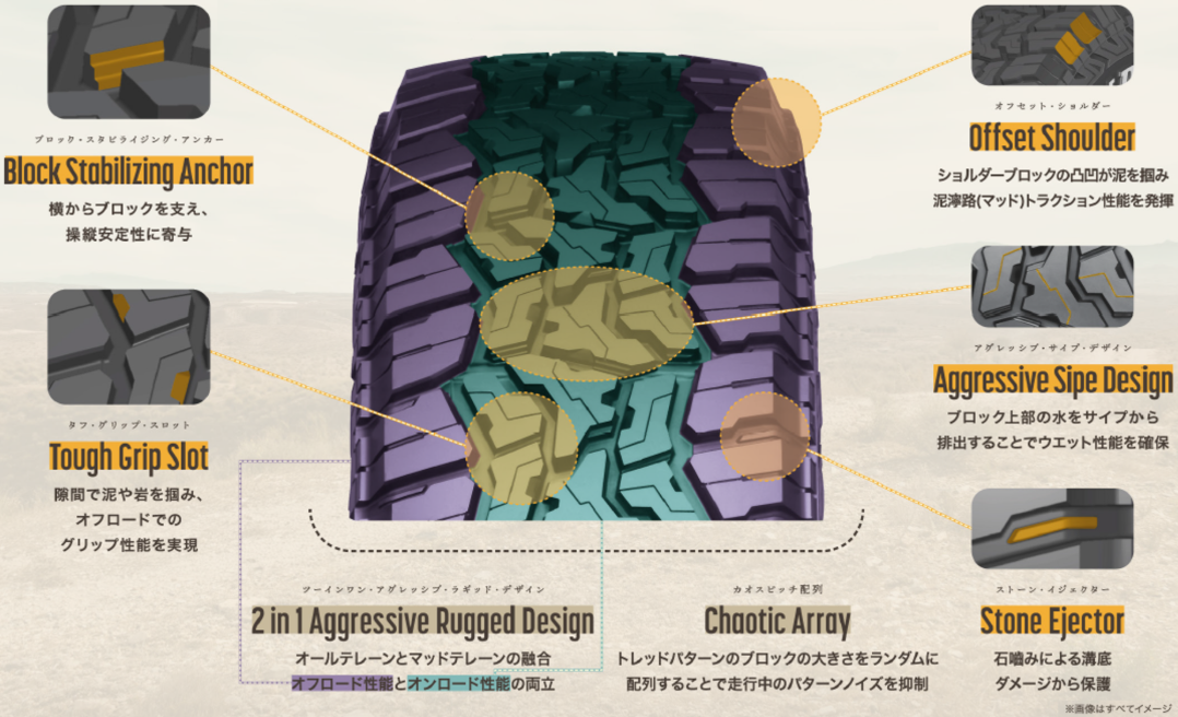 今回はダンロップブランド初の設定となるラギッドテレーンパターンの