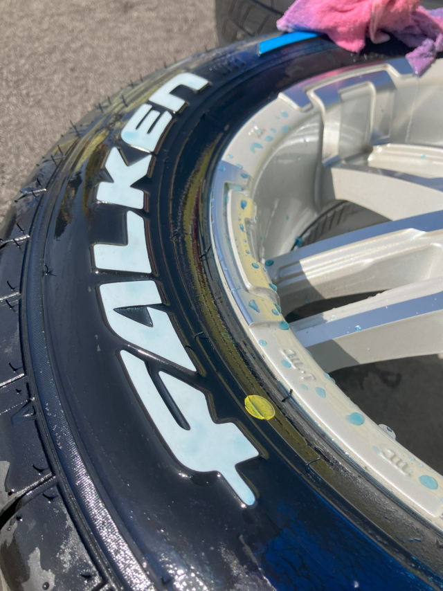 ホイールに青い水となってついてしまいますので乾く前に水で流してください