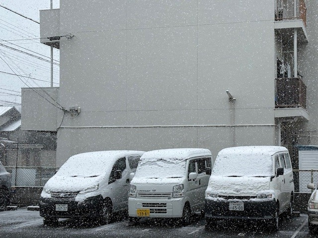 昨晩からの降雪で当店の社用車が雪まみれになってます。 自分が住んでいる所は伊丹より降雪がある地域ですが久々に積もっている雪を見ました。 予報ではまだ降り続けるのお気を付けください!