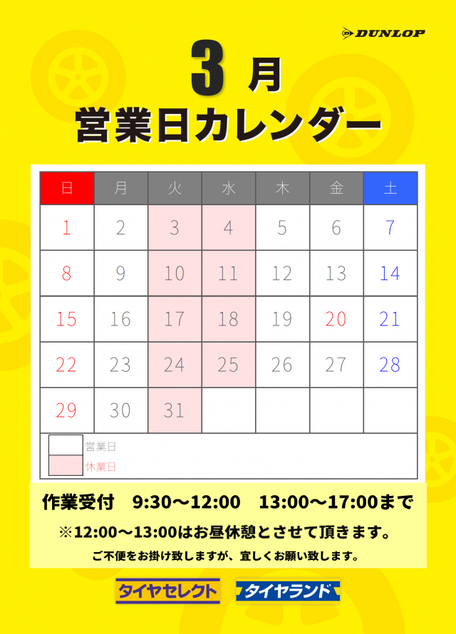 09:30~12:00 13:00~17:30(作業受付時間17:00まで)