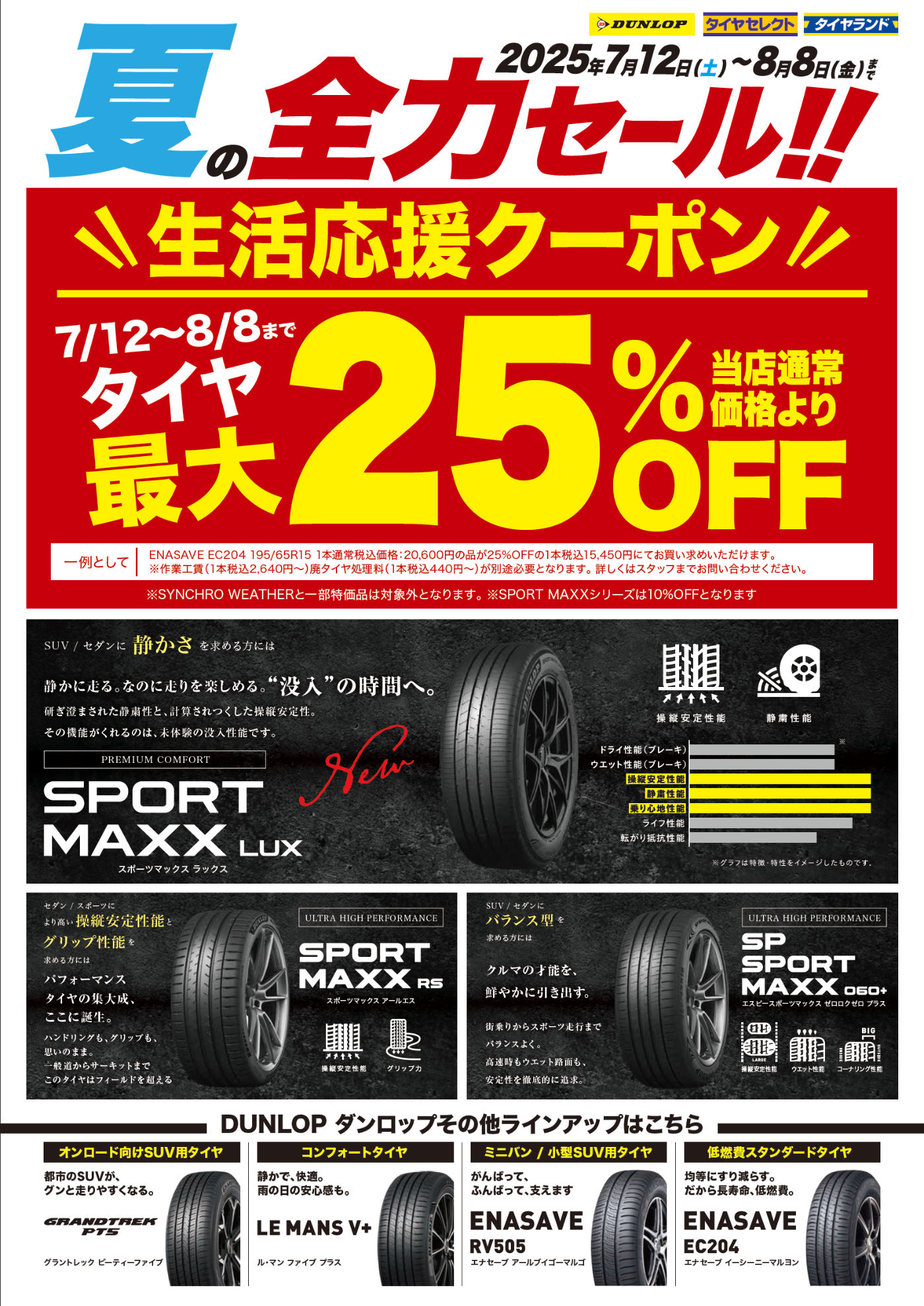 タイヤが当店通常価格より25%OFF!(シンクロウェザー、特価タイヤ除く)