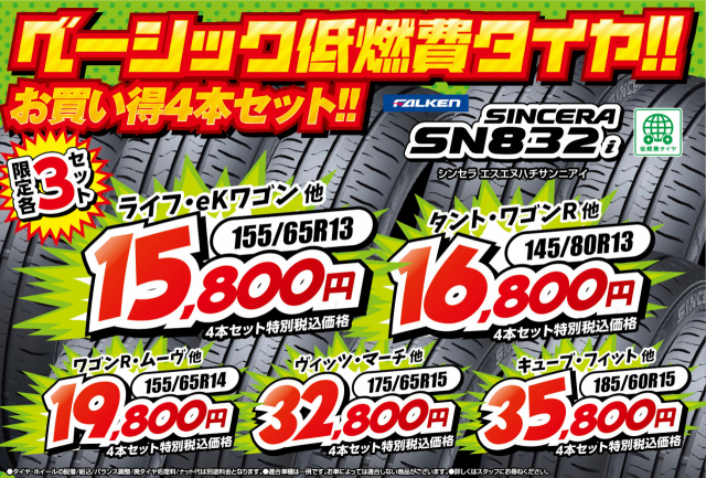そして全力セール期間中、ダンロップ・ファルケンブランドのタイヤを