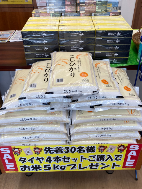 さらに、タイヤ4本セットご成約で、先着30名様にお米5kgプレゼント!