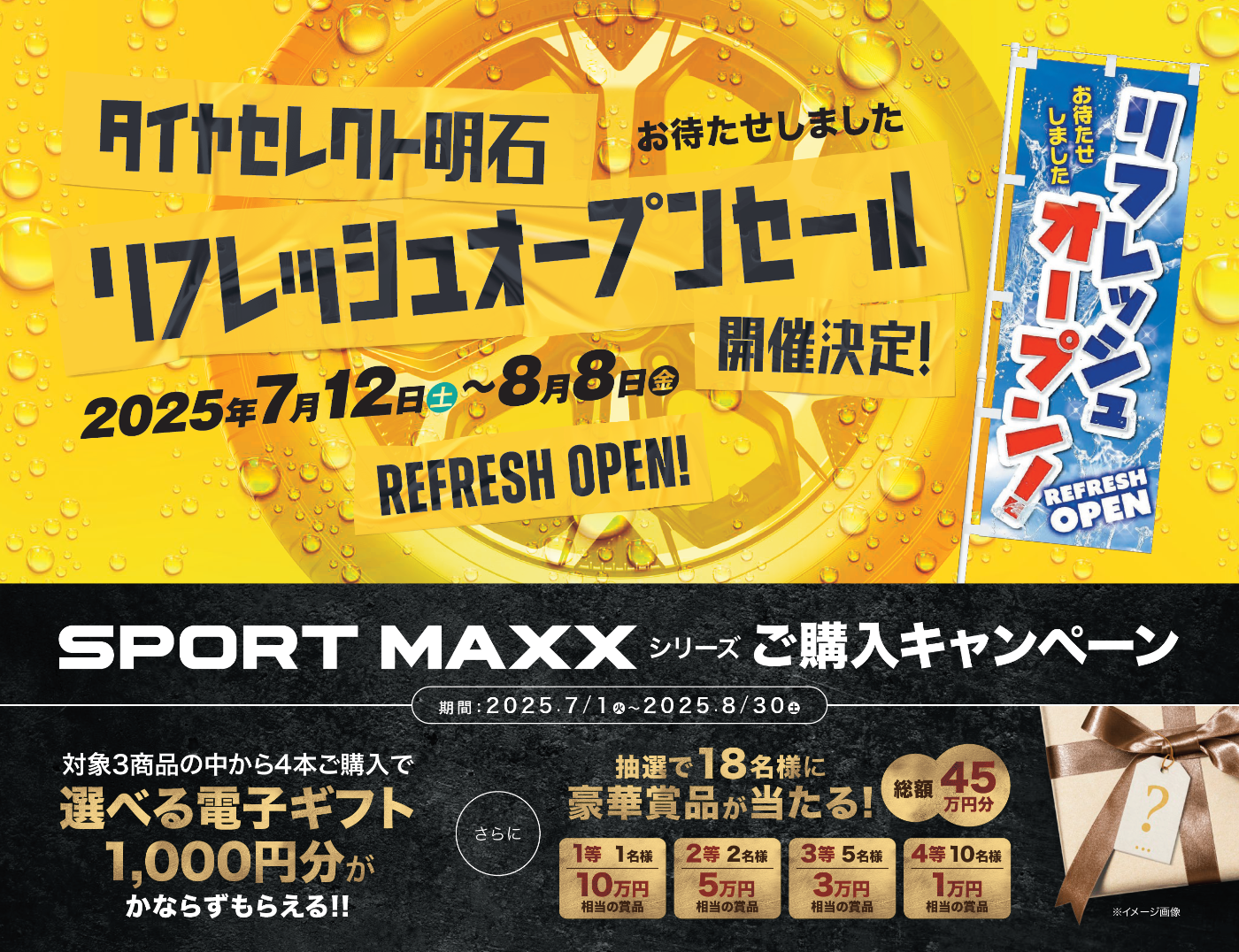 リフレッシュオープンセール8月8日まで!!~SPORT MAXXシリーズご購入キャンペーン開催中~