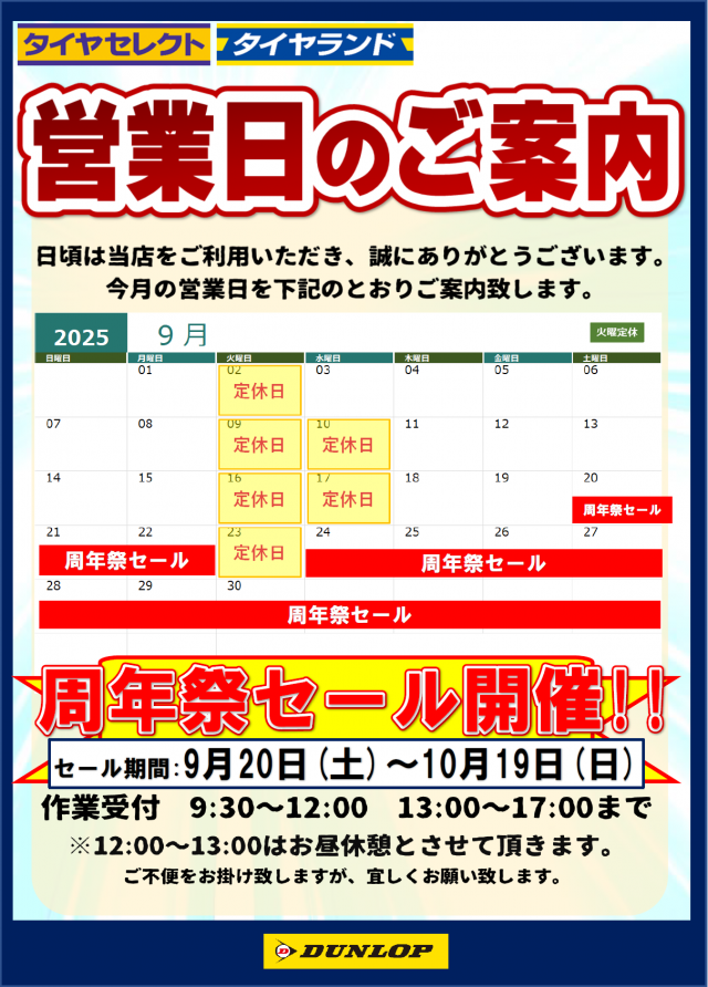 近畿圏内のタイヤセレクト・タイヤランド合同の一大セールとなっておりますのでご期待ください。