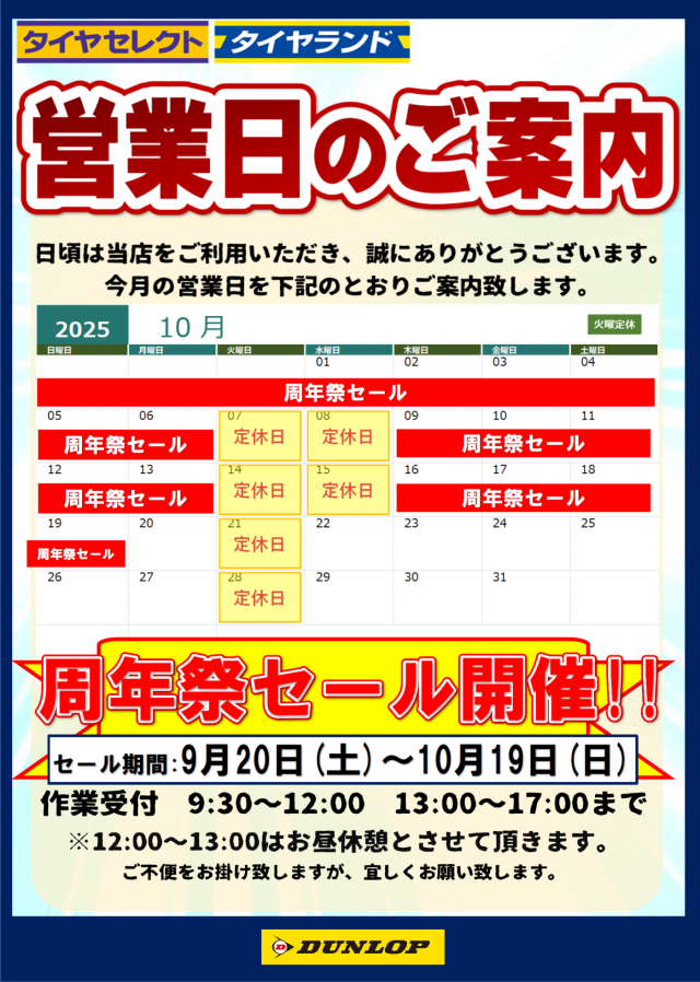 年に一度の周年セールとなっております、タイヤ交換をご検討のお客様は是非この機会にご検討ください。
