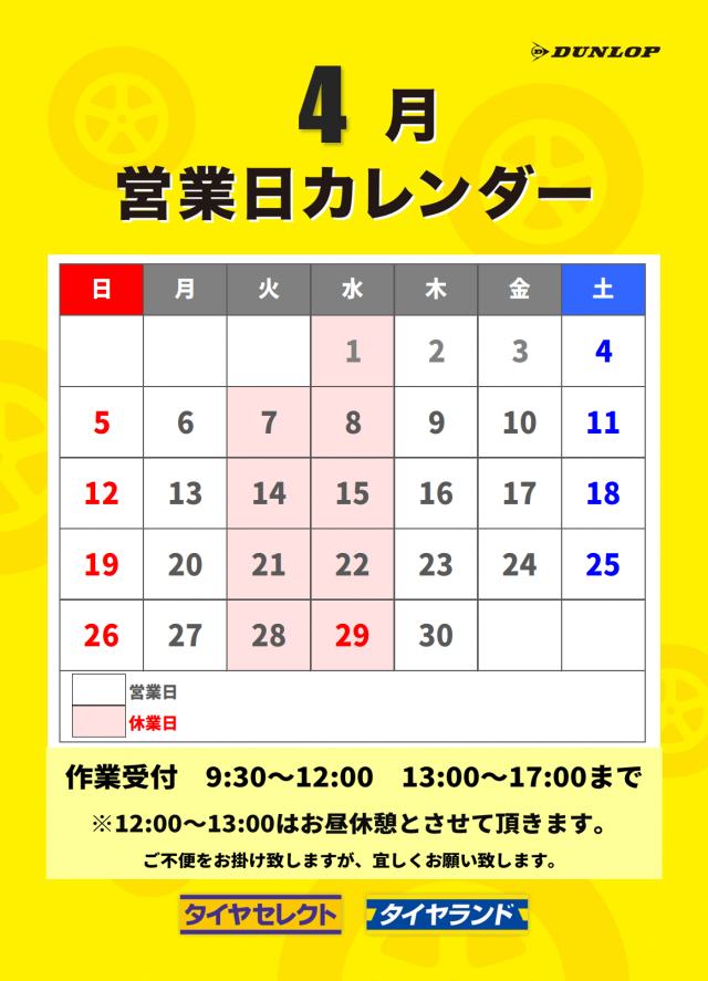 9:30-12:00/13:00-17:30(12:00-13:00お昼休みになります。作業受付17:00まで)