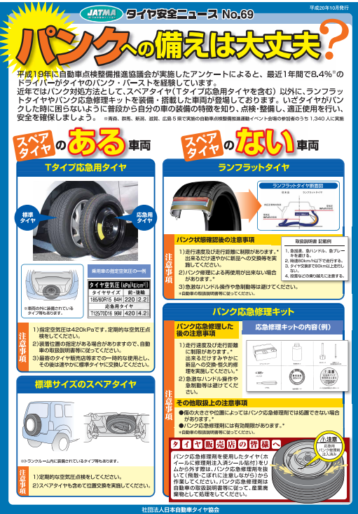 ←万が一のパンクの為の備えとして、スペアタイヤの有無をチェックをおススメしています。(画像はJATMA(社団法人日本自動車タイヤ協会)様掲載のものになります。)
