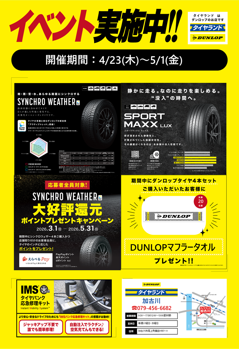 平素よりタイヤランド加古川をご利用頂き、ありがとうございます。