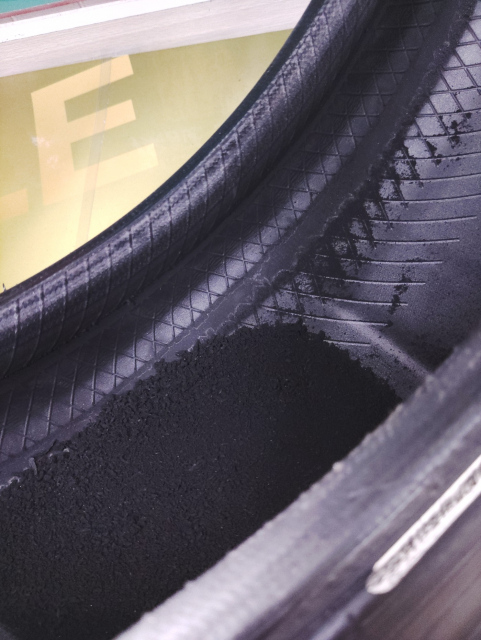 下の写真はパンクして、タイヤが再使用不可になってしまった例です。