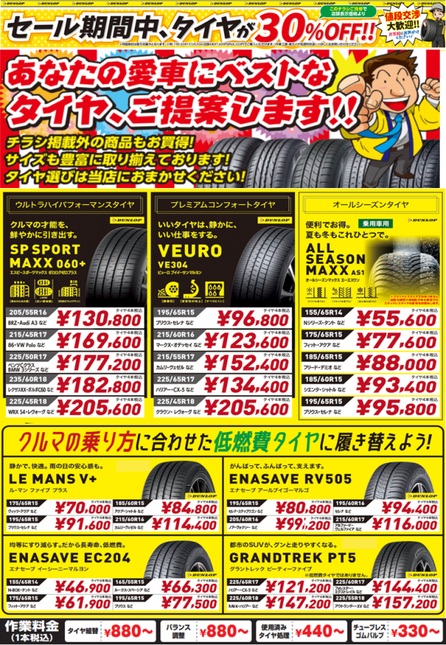 価格やタイヤの事について気になった事がありましたら、まずは点検からお気軽にご来店下さい!