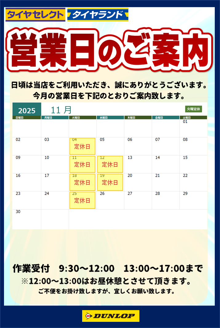 平素よりタイヤランド加古川をご利用いただき、ありがとうございます。