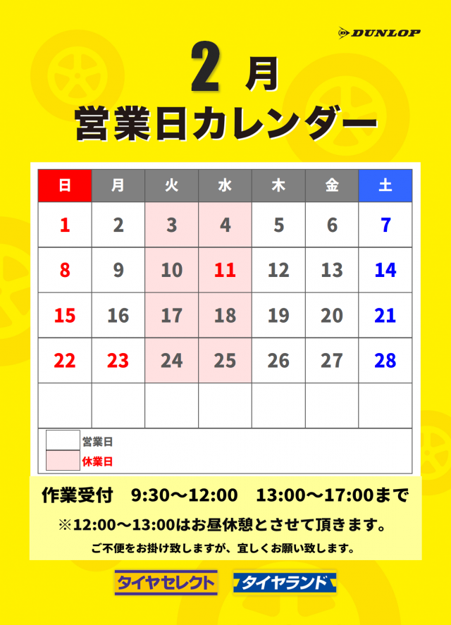 2月の営業日のお知らせになります。