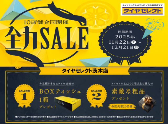 ホームページにアクセスありがとうございます。 当店では12月21日まで冬の全力セール開催中☆ セール中は店内アウトレット商品も最大50%OFFでお買得となっております! お買得タイヤをお探しの方は、お気軽にご相談く...