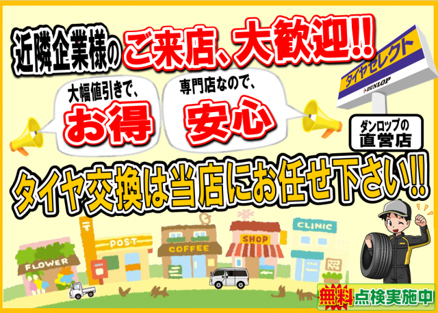ホームページにアクセス、ありがとうございます。 当店はダンロップの直営店です。 車輌のメンテナンス先をお探しの近隣企業様は お気軽に、ご相談下さませ。 タイヤ・オイル交換・ワイパーゴム などのメンテナスは当...