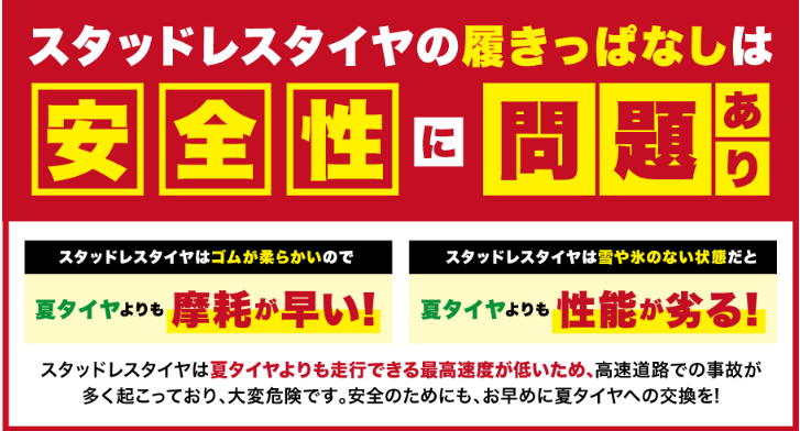 早めの交換が安心・安全です!夏タイヤへの履き替えも