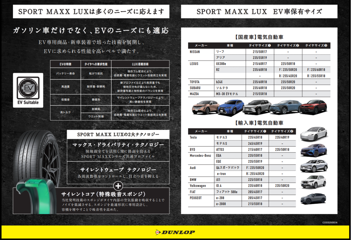 SPORT MAXX LUXはこのような特徴を持つEV車の要求性能を高いレベルで満たしています!