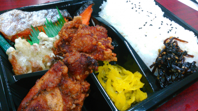 今日はシャケカラ弁当のご飯大盛りをいただきました。