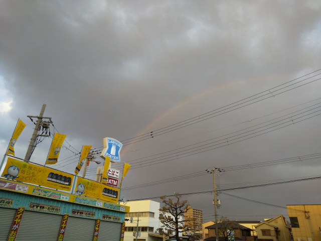 こちらもいつぞや雨上がりに見えた虹です。