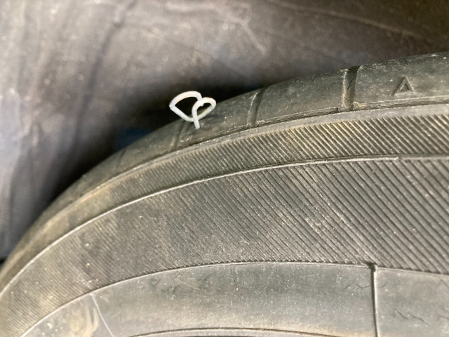 タイヤってこういうのも刺さるんですねぇ、ちょっと驚きました。