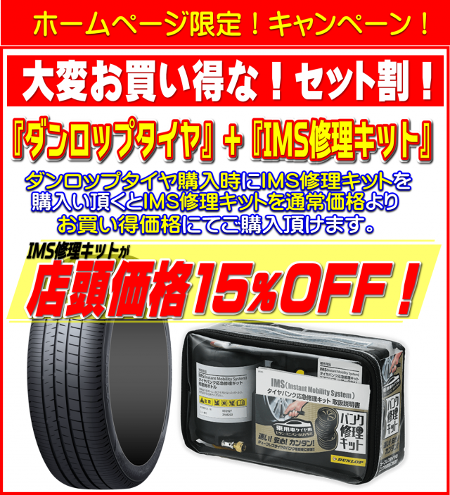 タイヤ交換と同時購入でIMS修理キットが通常価格の