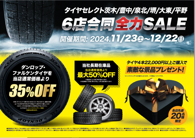 今年最後のセールですので、DUNLOP・FALKENタイヤの
