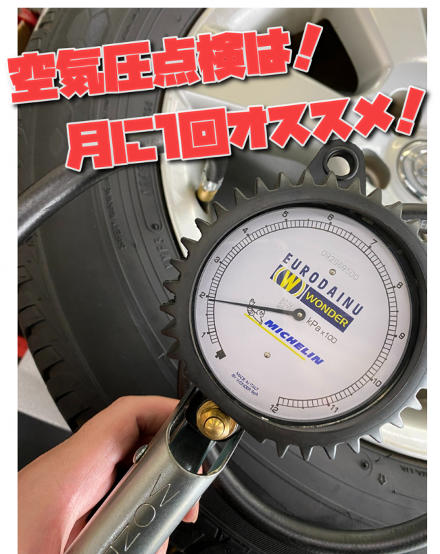 空気圧を点検する事でタイヤを長持ちさせる事や思わぬトラブルの回避も出来ます。