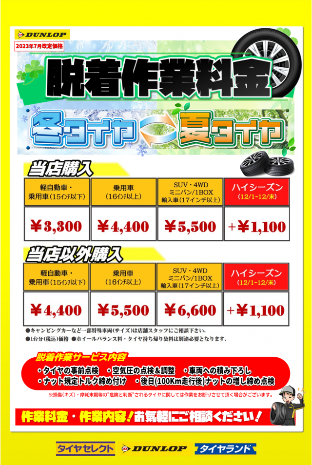 冬タイヤへの履き替え(脱着)をご予定の方
