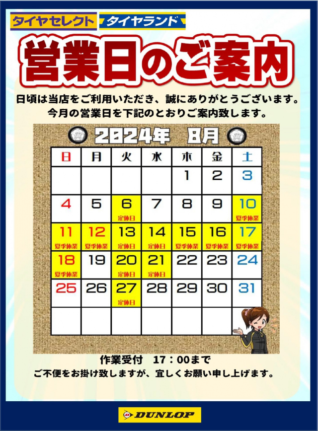 今月の定休日を掲載しております。