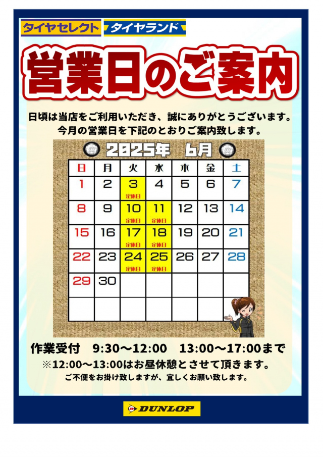 いつもタイヤセレクト泉北店のご利用ありがとうございます(^^) タイヤセレクト泉北では 「タイヤ交換応援フェア」を本日より開催いたします。 期間は6月1日(日)~6月30日(月)迄 混雑時は作業や接客に時間を頂く場...