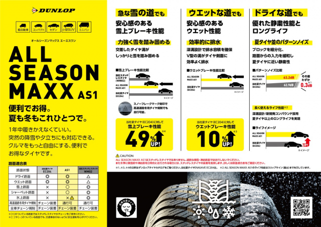 いつもタイヤセレクト泉北店のご利用ありがとうございます(^^) 本日は当店いちおし商品のご案内です!! 夏・冬兼用で使用出来るオールシーズンタイヤの紹介です( ^ω^ ) その名は「オールシーズンマックスAS-1」...