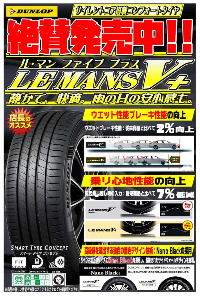 いつもタイヤセレクト泉北店をご利用有り難うございます♪ おすすめ商品のご案内になります。 ご存じの方もいらっしゃると思いますが サイレントコア搭載のルマンV+のご紹介です♬ 安全性能と快適性能を高次元で両立させ...
