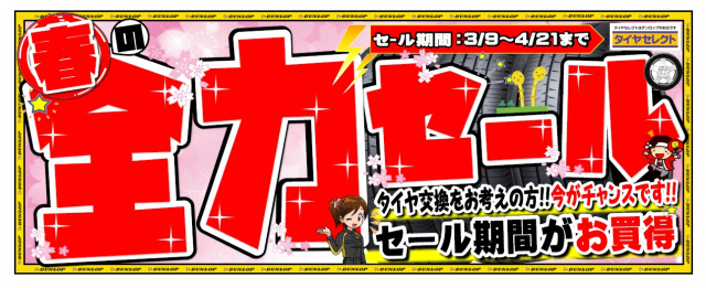 いつもタイヤセレクト泉北店のご利用ありがとうございます(^^) タイヤセレクト泉北では 「春の全力セール」を開催いたします。 セール期間は3月9日(土)~4月21日(日)迄 春のスタッドレスタイヤから夏タイヤへの履...