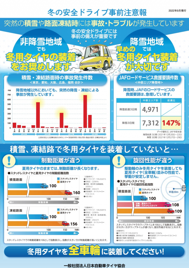 いつもタイヤセレクト泉北店をご利用有り難うございます♪ 暖かい食べ物がおいしい季節になりました。 早いもので恵方巻のチラシや予約を見ると、「もう、節分?」と感じる今日この頃ですが 冬タイヤの装着についてのご...