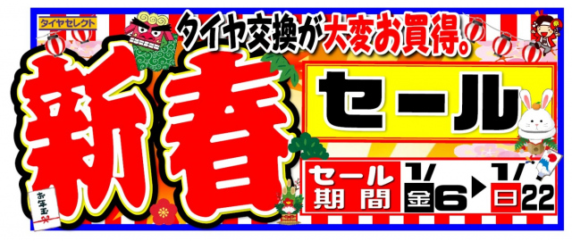 いつもタイヤセレクト泉北店をご利用有り難うございます♪ 気温の寒暖差で体調管理をきにしている今日のこの頃ですが 2023年新春セールを開催中です。 セール期間も残り4日となりました。 期間中タイヤ4本お買い上げの...