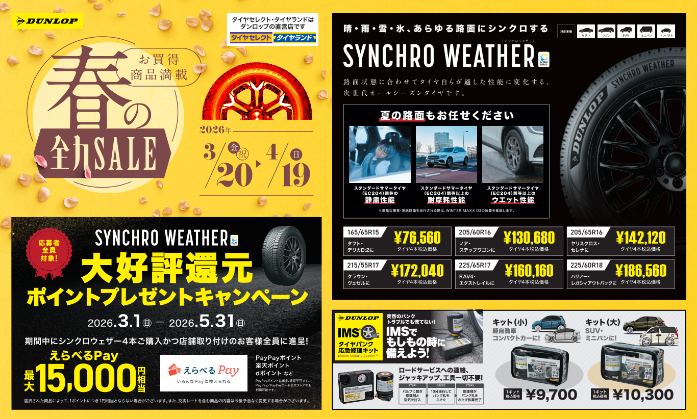 緊急事態宣言の解除が発表されたことを受け、当該エリアのタイヤセレクト・タイヤランド(直営店)におきましては、順次、通常営業を再開いたします。 お客様及び従業員の安全を第一に考え、予約制の導入や接客時間の短縮をはかることで、お客様同士の距離の確保や、スタッフとの接触機会を最小限に心がけるなどの感染防止に努めてまいります。 (店内には消毒液を設置しております。また換気、テーブル等の消毒も実施しております。) 詳細は「 お知らせ」をご確認ください。 ご不便やご迷惑をおかけいたしますが、何卒宜しくお願い申し上げます。