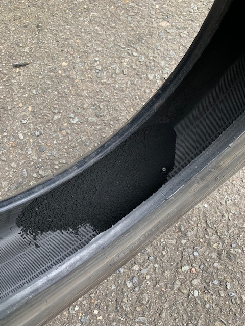 そして、このタイヤの中にはタイヤに負荷がかかり粉がたくさん(画像3枚目)