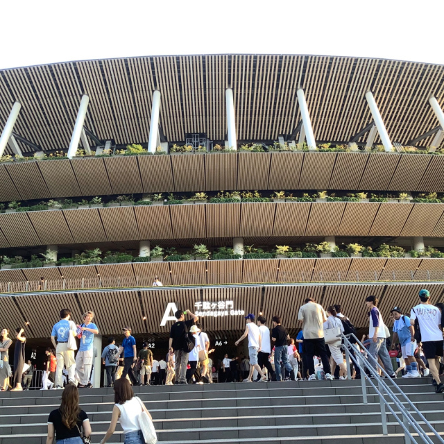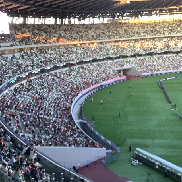 新国立競技場はきれでいで、景色も良いですが、スタジアムの上の方は傾斜が急で上りおりもちょっと怖かったです。
