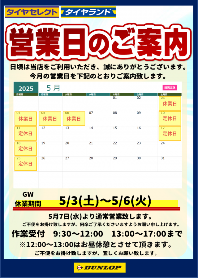 ゴールデンウイークもすぐそこですね♬ タイヤのトラブルを無くす為にも、是非とも、お出かけ前にはタイヤ点検の実施お願い致します☆ 無料点検してますので、どうぞお気軽にお越し下さいませ♬ タイヤの事はタイヤランド...