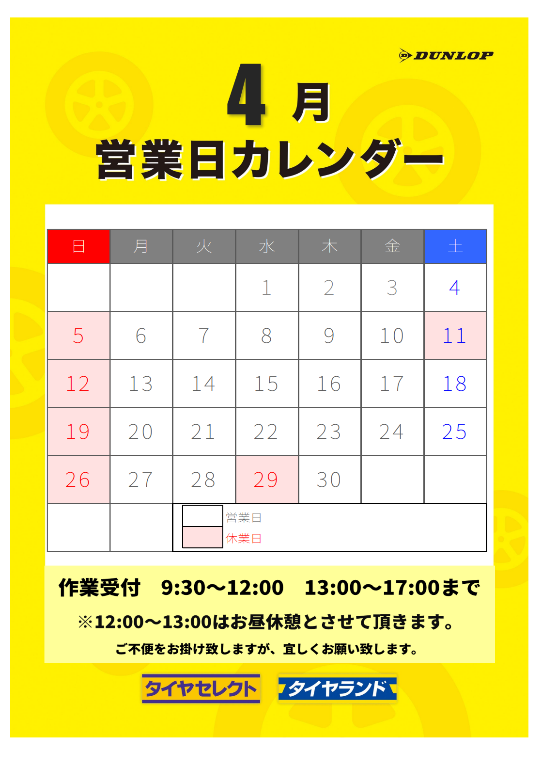 4月営業日のご案内♬