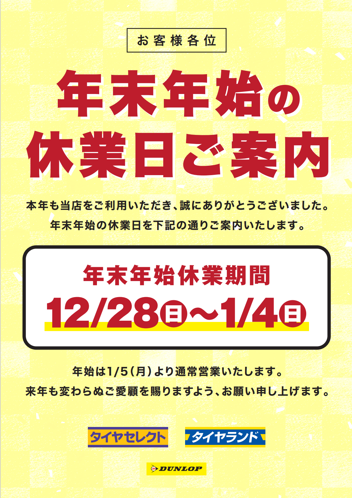 今年一年ありがとうございました☆ 来年も、タイヤの事はタイヤランド奈良におまかせあれ♬ それでは、皆様良いお年をお迎えください☆