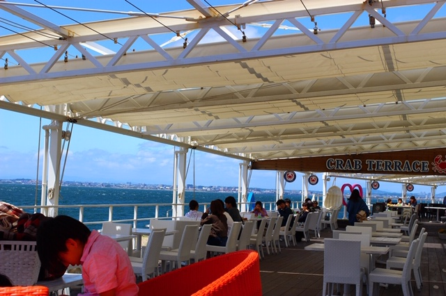 凄くお洒落なレストランで、オーシャンビューのウッドデッキがあり