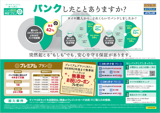 タイヤのご購入とパンク安心保証の加入をしていただきました。
