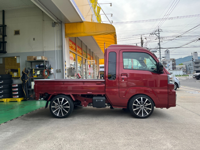 本日は、ダイハツ・ハイゼットトラックジャンボの車高調の取付作業です。