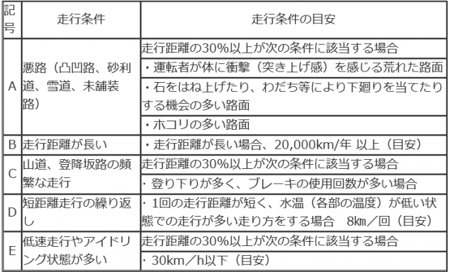 次にオイル交換の目安ですが、各メーカーの説明書で「シビアコンディションの場合」と