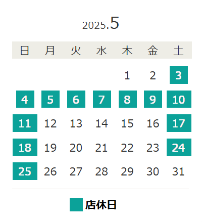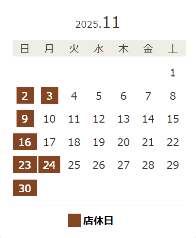 | 日 | 月 | 火 | 水 | 木 | 金 | 土 |