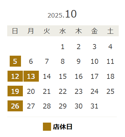 以上が、10月の店休日となります。